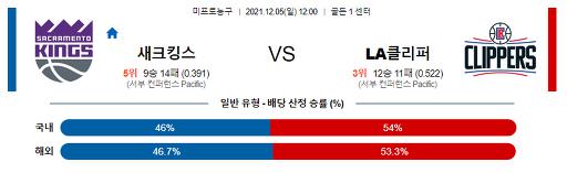 열람중 12월 5일 NBA분석 새크라멘토 : LA클리퍼스 2021.12.05 514