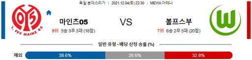 분데스리가 12월 4일 23:30 마인츠 : VfL 볼프스부르크