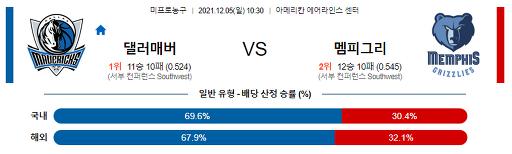 열람중 12월 5일 NBA분석 댈러스 : 멤피스 2021.12.05 446