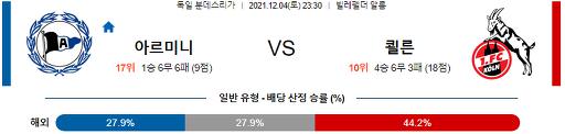 분데스리가 12월 4일 23:30 아르미니아 빌레펠트 : FC 쾰른