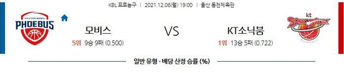 [한국프로농구] 12월6일 현대모비스 vs KT소닉붐