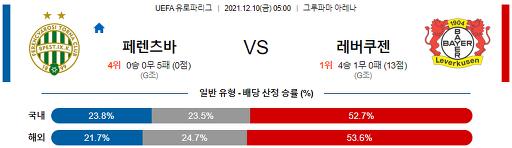 유로파리그 12월 10일 05:00 페렌츠바로시 TC : 레버쿠젠