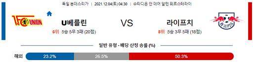분데스리가 12월 4일 04:30 유니온 베를린 : 라이프치히