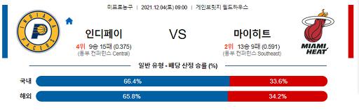 열람중 12월 4일 NBA분석 인디애나 : 마이애미 2021.12.03 492