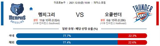 12월 3일 10:00 NBA분석 멤피스 : 오클라호마