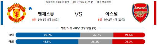 프리미어리그 12월 3일 05:15 맨체스터 유나이티드 : 아스날