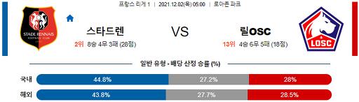 리그앙 12월 2일 05:00 스타드 렌 FC : 릴 OSC