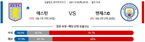 프리미어리그 12월 2일 05:15 애스턴 빌라 : 맨체스터 시티