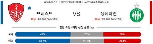리그앙 12월 2일 03:00 스타드 브레스트 29 : AS 생테티엔