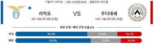 세리에A 12월 3일 04:45 SS 라치오 : 우디네세 칼초