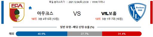 분데스리가 12월 4일 23:30 아우크스부르크 : VfL 보훔