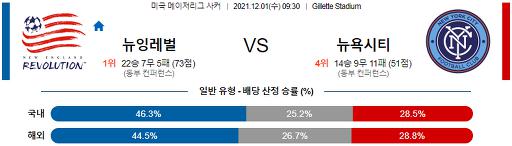 메이저리그사커 12월 01일 09:30 뉴잉글랜드 레볼루션 : 뉴욕 시티 FC