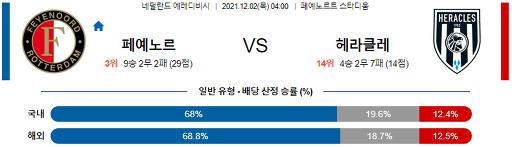 에레디비시 12월 2일 04:00 페예노르트 : 헤라클레스 알멜로