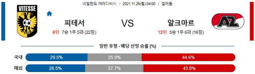 에레디비시 11월 29일 04:00 비테세아른햄 : AZ 알크마르