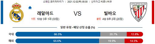 프리메라리가 12월 2일 05:00 레알 마드리드 : 아틀레틱 빌바오