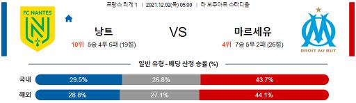 리그앙 12월 2일 05:00 FC 낭트 : 올림피크 마르세유