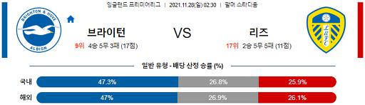 프리미어리그 11월 28일 02:30 브라이턴 앨비언 : 리즈 유나이티드 FC