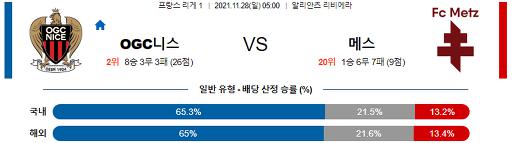 리그앙 11월 28일 05:00 OGC 니스 : FC 몌스