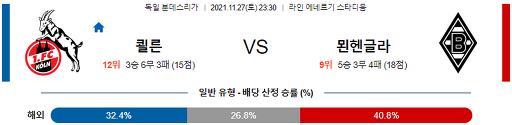 분데스리가 11월 27일 23:30 FC 쾰른 : 묀헨글라트바흐
