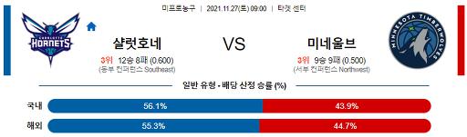11월 27일 09:00 NBA분석 샬럿 : 미네소타