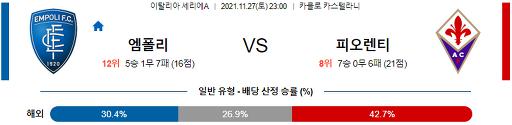 세리에A 11월 27일 23:00 엠폴리 : ACF 피오렌티나