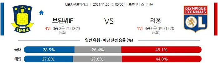 [UEFA유로파] 11월26일 브뢴비IF vs 리옹
