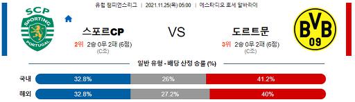 챔피언스리그 11월 25일 05:00 스포팅 CP : 보루시아 도르트문트
