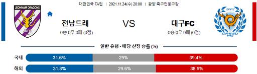 FA컵 11월 24일 20:00 전남 드래곤즈 : 대구 FC