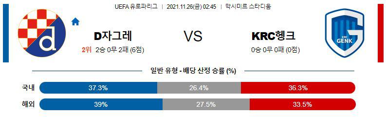 [UEFA유로파] 11월26일 디나모 자그레브 vs KRC 헹크 유나이티드