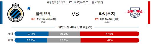 챔피언스리그 11월 25일 05:00 클뤼프 브뤼허 : 라이프치히