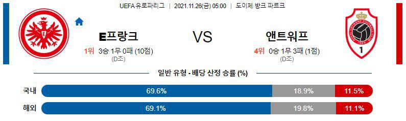 [UEFA유로파] 11월26일 아인트라흐트 프랑크푸르트 vs 로열 앤트워프