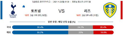프리미어리그 11월 22일 01:30 토트넘 훗스퍼 : 리즈 유나이티드 FC
