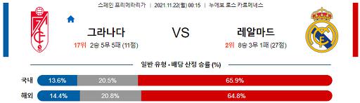 프리메라리가 11월 22일 00:15 그라나다 CF : 레알 마드리드