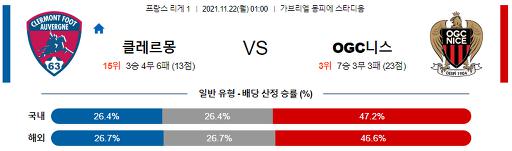 리그앙 11월 22일 01:00 클레르몽 푸트 : OGC 니스