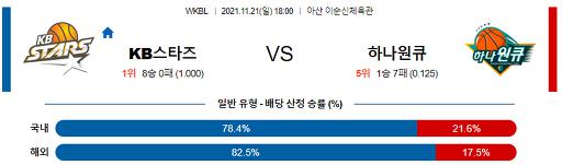 11월 21일 18:00 KBL KB스타즈 : 하나원큐