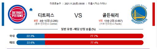 11월 20일 NBA분석 디트로이트 : 골든스테이트