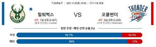 11월 20일 NBA분석 밀워키 : 오클라호마