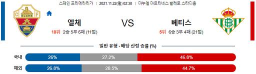 프리메라리가 11월 22일 02:30 엘체 CF : 레알 베티스