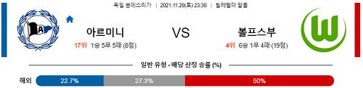 분데스리가 11월 20일 23:30 아르미니아 빌레펠트 : VfL 볼프스부르크