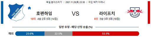 분데스리가 11월 20일 23:30 TSG 1899 호펜하임 : 라이프치히
