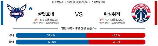 11월 18일 09:00 NBA분석 샬럿 : 워싱턴