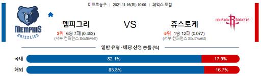 11월 16일 10:00 NBA분석 멤피스 : 휴스턴