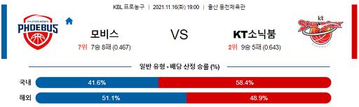 11월 16일 19:00 KBL중계 울산 모비스 : 수원 KT