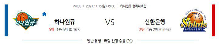 【WKBL】 11월15일 하나은행 vs 신한은행