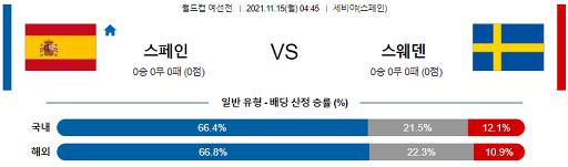 월드컵예선전 11월 15일 04:45 스페인 : 스웨덴