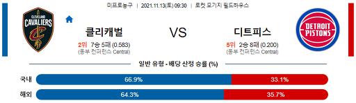 11월 13일 09:30 NBA분석 클리블랜드 : 디트로이트