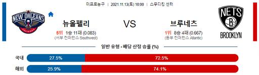 11월 13일 10:00 NBA분석 뉴올리언스 : 브루클린