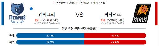 11월 13일 10:00 NBA분석 멤피스 : 피닉스