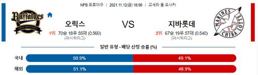 11월 12일 18:00 NPB 오릭스 : 치바롯데