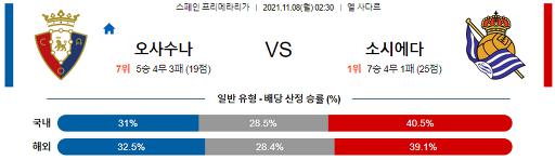 프리메라리가 11월 8일 02:30 CA 오사수나 : 레알 소시에다드